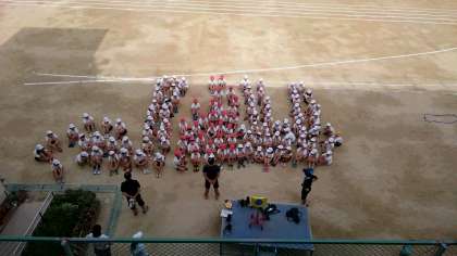 朝から陸上の練習をしています。