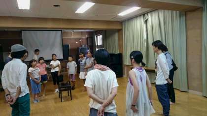 自己紹介の後、美術家の梅田哲也さんの指導のもと、ワークショップを行いました。