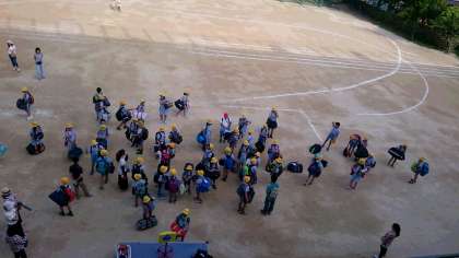 7時15分の集合にむけて、子どもたちが登校してきました。