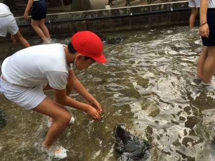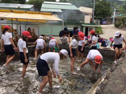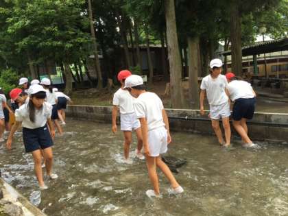 川の水はとても冷たくて、少し入っていると、足がしびれてくるぐらいです。小さな魚やカエルなどがいました。運がいいとサンショウウオも見つかるようです。