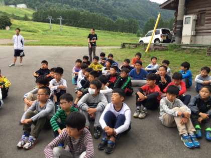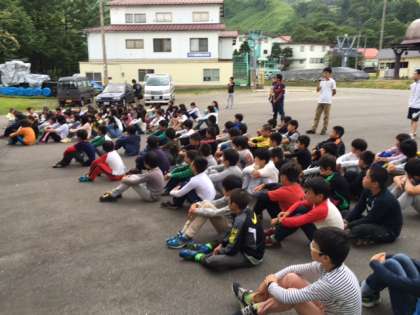 今朝は雨の予報でしたが、今のところなんとかもっています。モニュメントのところまで散歩をし、氷ノ山をバックに学年全体で記念撮影をしました