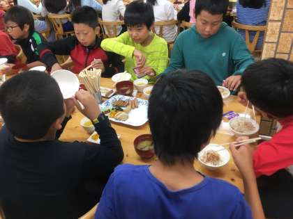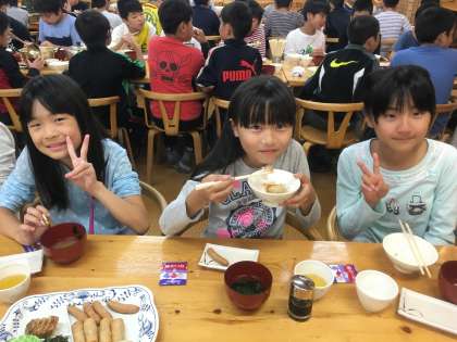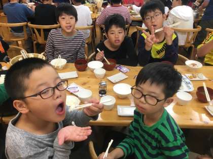 美味しそうな朝食を前に、テンションが上がっている子がたくさんいます。