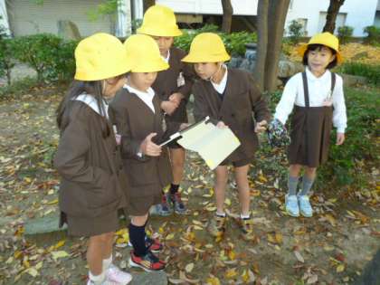 1年生が、公園の季節の移り変わりをタブレットに収めてきました。木々が色づいてとてもきれいでした。
