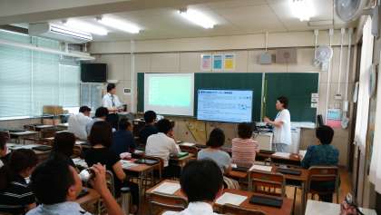 タブレットが4月から新しくなり、8月2日に機能を更新したので、研修を行いました。