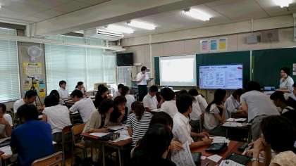 今日も10時から本校の教室を使用して「大阪市教育センター」がICTの研修会を行いました。