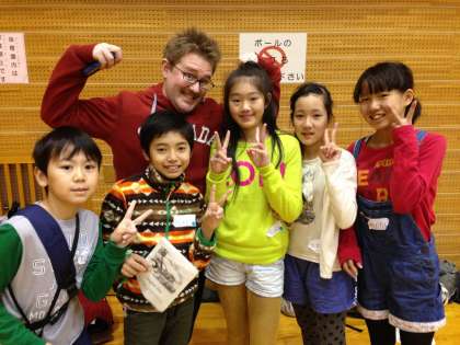 旗取りゲームがおもしろかったです。タッチされてアウトになっても、敵側の人の英語の質問に答えることができればまた復活できる、というルールでした。ぼくは’Do you like Natto?’と聞かれ’Yes, I do.’と答えたので、アウトになってもまたゲームに参加できました。また来年も行きたいです。