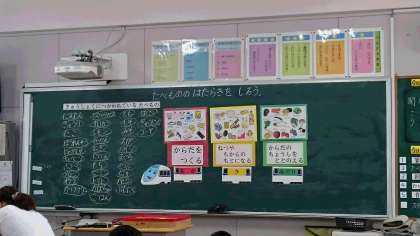 栄養指導:2年生がたべものの働きについて学習しました。