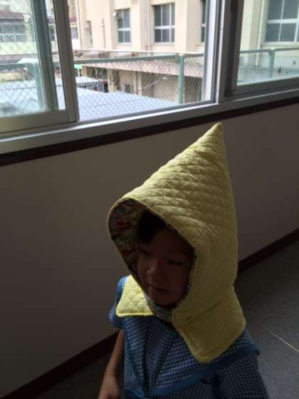そのため、今後は「防災ずきん」を身に着けた避難訓練を通して、より安全に避難することができるよう計画を進めておりますので、子どもたちの防災ずきんをご用意いただきますようお願いします。