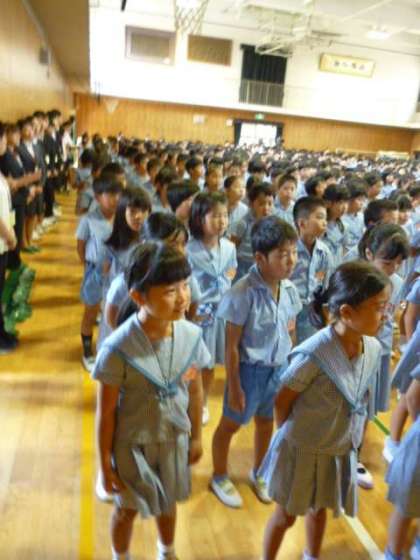(写真は9月1日の始業式の様子です。)