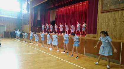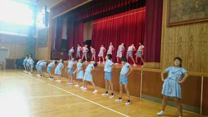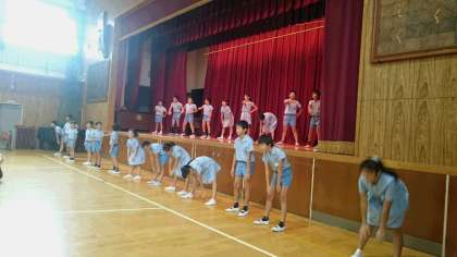 運動委員会が、「堀江☆背筋ピン体操」を披露しました。