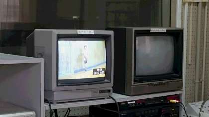 テレビを観ながら、教室で体操をします。