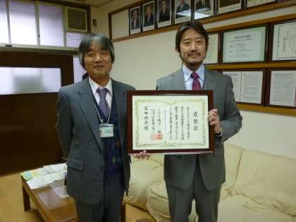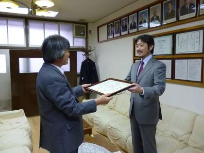 前PTA会長の冨田理彦氏に、橋下市長からPTA教育活動の貢献に対して感謝状が贈呈されました。
