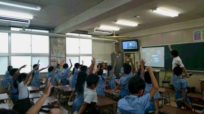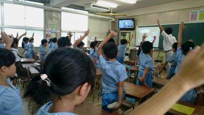 水曜日の朝は、全クラスで「背筋ピーン体操」を行っています。