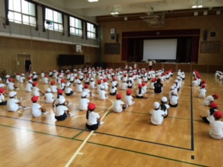 良い姿勢で先生のお話を聞き、先生と同じ動きをしようと精一杯練習に取り組んでいました。
