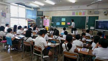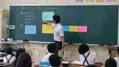 3年1組の中辻教諭が修学旅行の付添に行っているので、その補充として、永原教頭が算数科の「数の仕組み」についての授業を行いました。