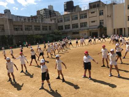 10月12日 いよいよ外に出て練習です! 隊形の場所を確認しました!これからどんどん細かい所を合わせてがんばろう!