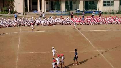 5・6年生と教職員で対抗リレーを行いました。