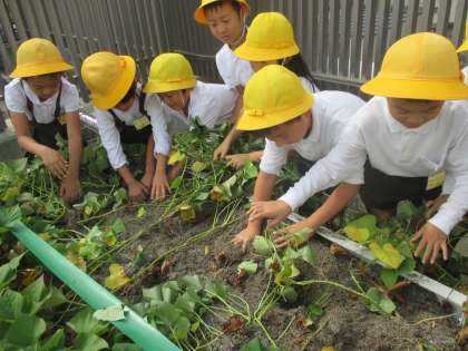 屋上学習園に植えたサツマイモを収穫しました。せまい学習園で、少ししか収穫できませんでしたが、このサツマイモをどうしようか?「1年生にも分けてあげたいな。」とおいもパーティーに意欲的です。