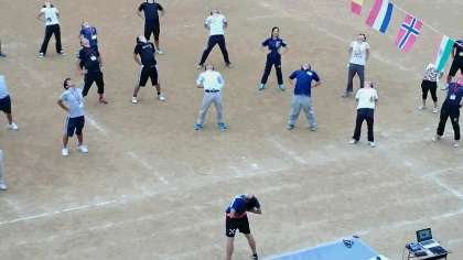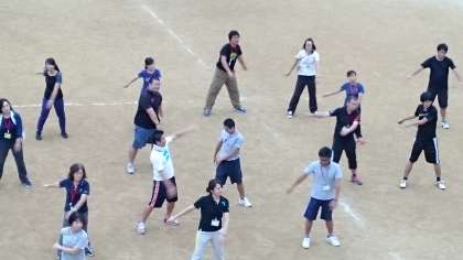 背筋を伸ばし、指先まで神経を使い、一つ一つの動きの意味合いを考えながら、ラジオ体操の研修を行いました。