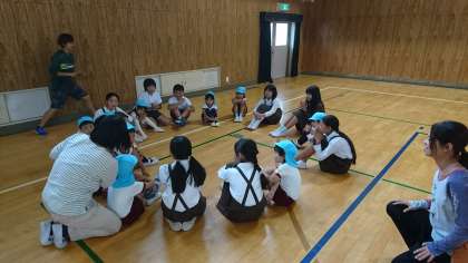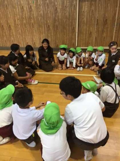 明日の就学時検診を前に堀江幼稚園の年長組と交流会をしました。