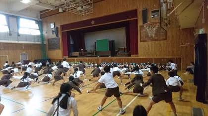 5年生の南中ソーランを披露し、背筋ピーン体操を一緒にしました。