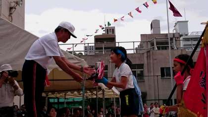 1年生が代表でPTAの方から参加賞をいただきました。