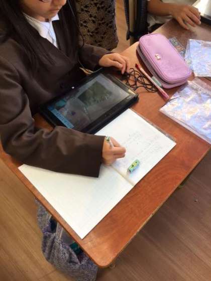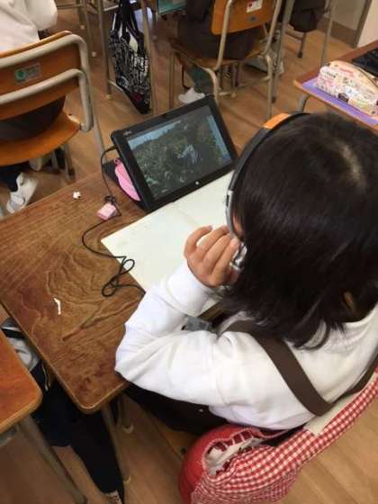 花から実になる様子を一人ひとりタブレットで確認し、ノートにまとめました。