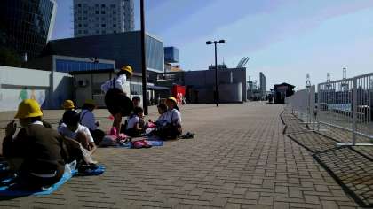 風がきつくて、飛ばされたビニール袋を追っかけるシーンも。