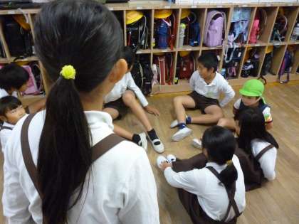 写真は、時間が余ったので班で遊んでいる様子です。