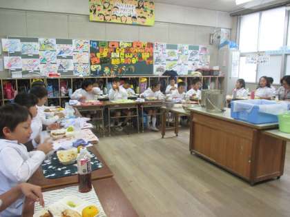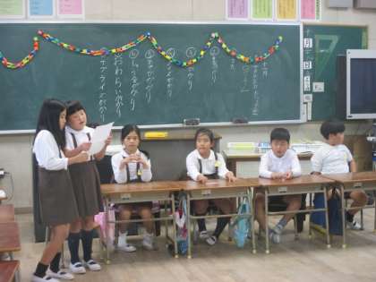 9月・10月・11月生まれのお友だちのお誕生会をしました。それぞれの係り出し物を楽しみ、輪になって給食を食べました。