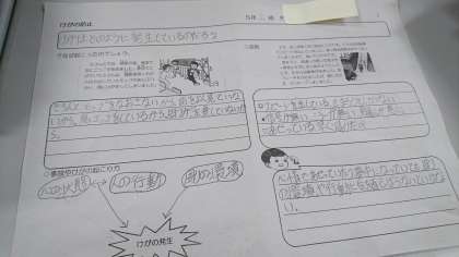 5年生では「保健」の学習でけがの防止に取り組んでいます。