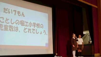 集会委員がお誕生日集会にちなんだクイズを行いました。