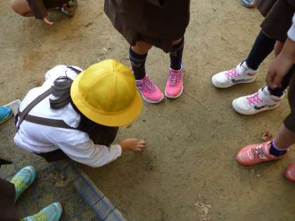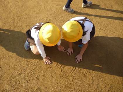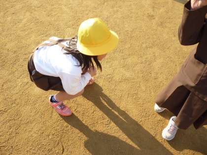 校庭に出て、日なたと日かげの違いを調べに行きました。