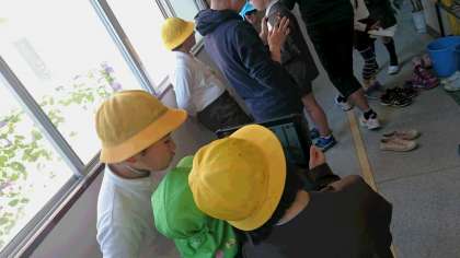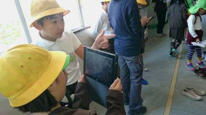 タブレットで顔に見えるものを幼稚園児と探して、写真を撮りました。