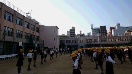 朝会の時は、体力増強を目指してラジオ体操を行っています。