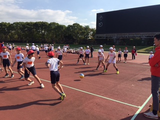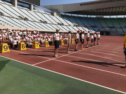 児童は世界陸上の舞台にもなったフィールドで全力で走り、