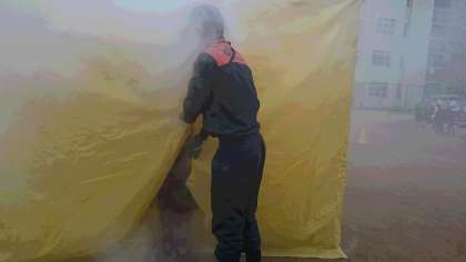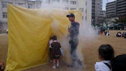 煙たくない、身体に害のない煙ですが、中に入ると足元も50センチ先が見えないので、恐ろしさと不安を抱えながら、とにかくまっすぐ進みました