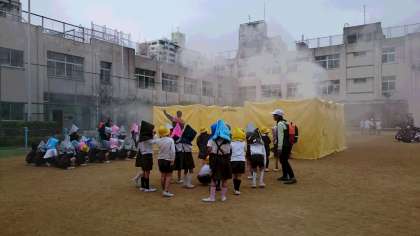 「明るい方に向かって進んでください」と外から消防署の方が呼んでくださいます。