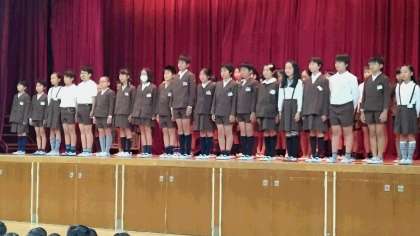 児童会前期の運営委員と代表委員が退任の挨拶をしました。