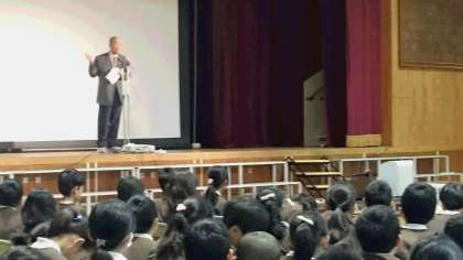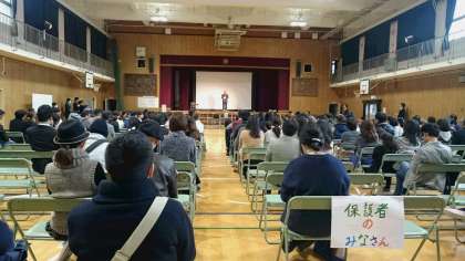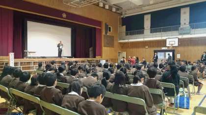 4年は講堂で「防災フォーラム」を行いました。