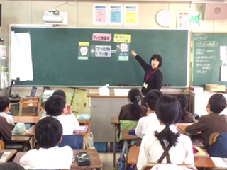 養護教諭から事前指導で、フッ化物塗布とはどんなことをするのか、注意点などを説明しました。今日から金曜日まで、いつもよりていねいに歯磨きをするように心がけましょう。