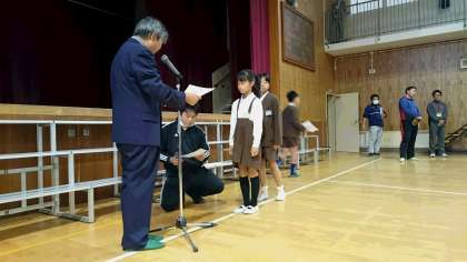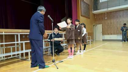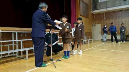 「キーボード選手権」で優秀な成績をおさめた児童を表彰しました。