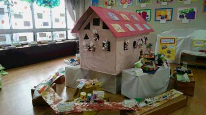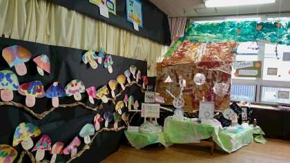 どのお部屋も廊下も階段も園児の作品で宝箱のようです。