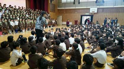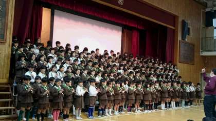 3年生が「西区音楽交流会」に出演する時の合唱や演奏を披露しました。