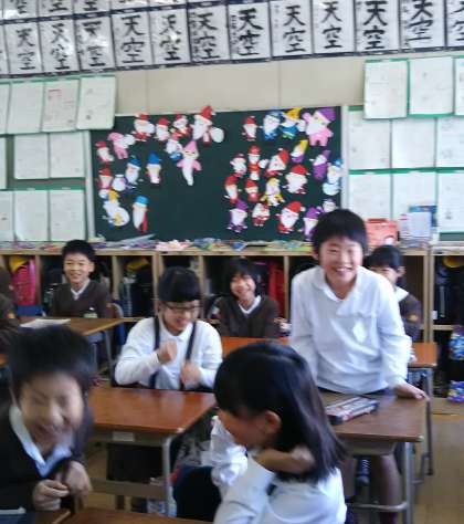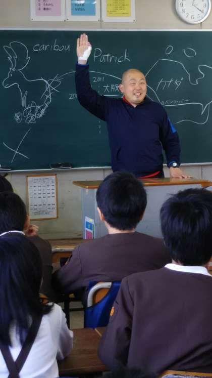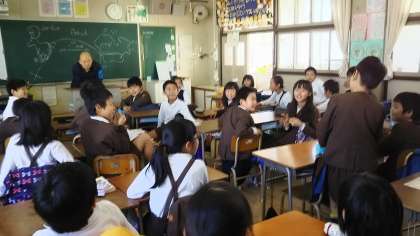 初めてのパトリック先生の英語の授業。先生の大きな身振り、ユニークな表情に、自然とみんな笑顔になります。カナダのお話を聞いたり、自己紹介したり英語の時間をたっぷり楽しむことができました。