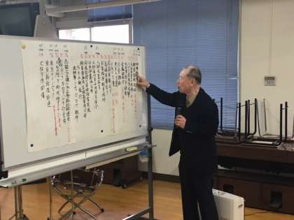 堀江連合振興町会副会長様からご自身の子どもの頃の、戦争や遊びの体験についてお話をしてくださいました。