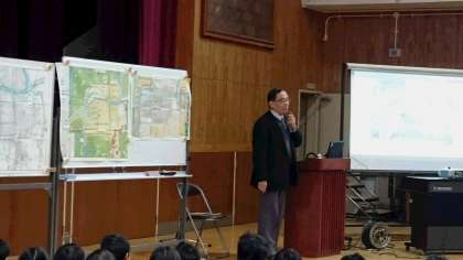 西六連合振興町会会長様が、ご自身の子どもの頃の地域の様子や、さらには会長様のご両親の子どもの頃の通知票などご紹介いただきながら、お話をしてくださいました。