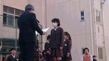 全校朝会 絵画表彰