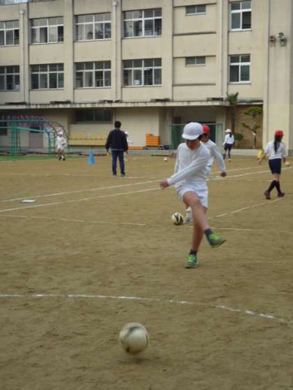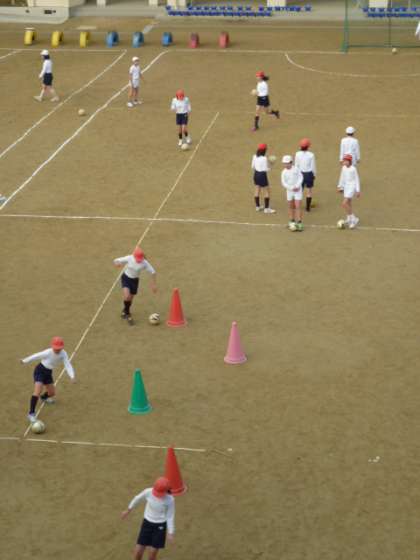 ドリブルとワンツー・シュートの練習です。さすがに6年生ともなるとキック力が違います。