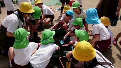 堀江幼稚園と堀江小学校の子どもたちです。